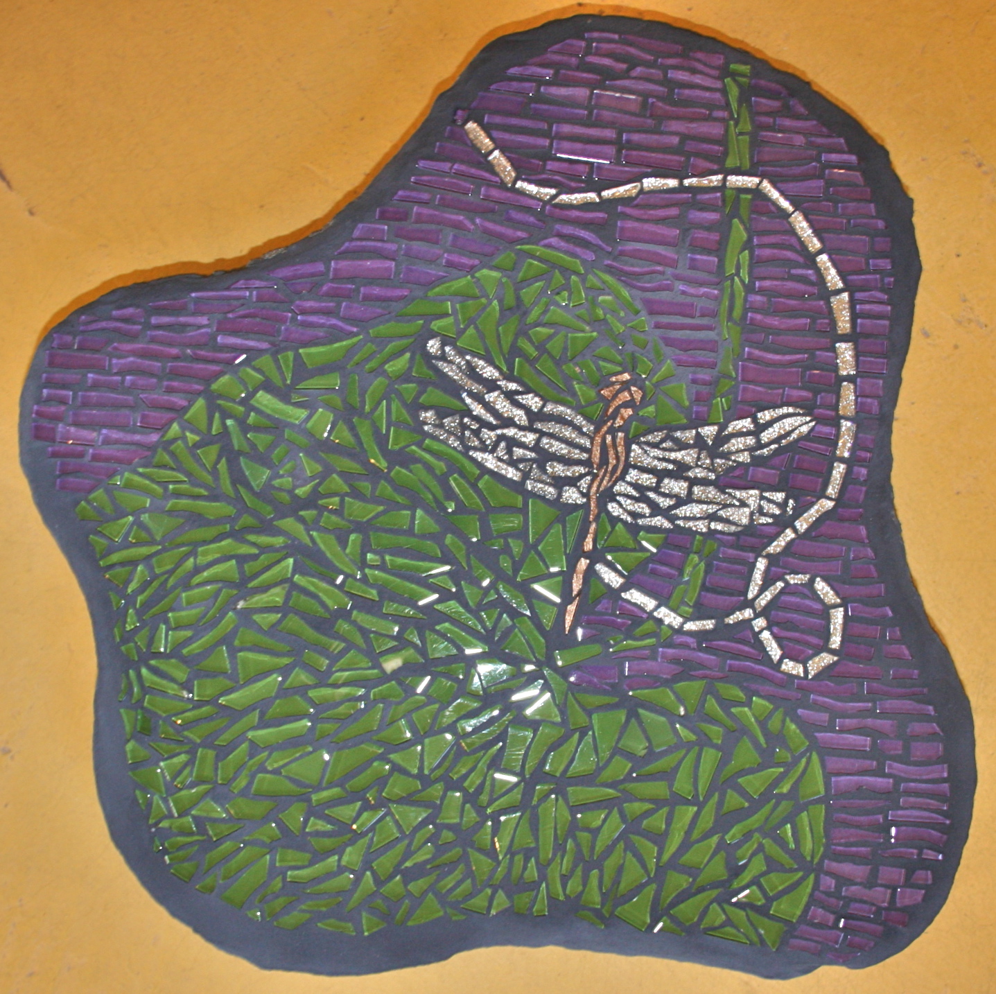 Dragonfly and leaf garden stone by Terri Helm-Remund